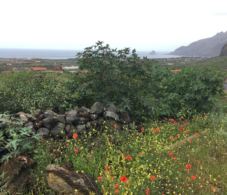 Skaniausiai valgėme savo finkutėje. Jėtau KOKIĄ nuostabią vietą turėjome SAU tas trejetą dienų! Ir toje nuostabioje vietoje – LaGorona, atėjo Jono gimtadienis. Papuoštas laukinių aguonų žiedais, vietiniu keksiuku (su maisto gaminiais ten nelabai), mūsų palinkėjimais ir El Hierro ananasais.