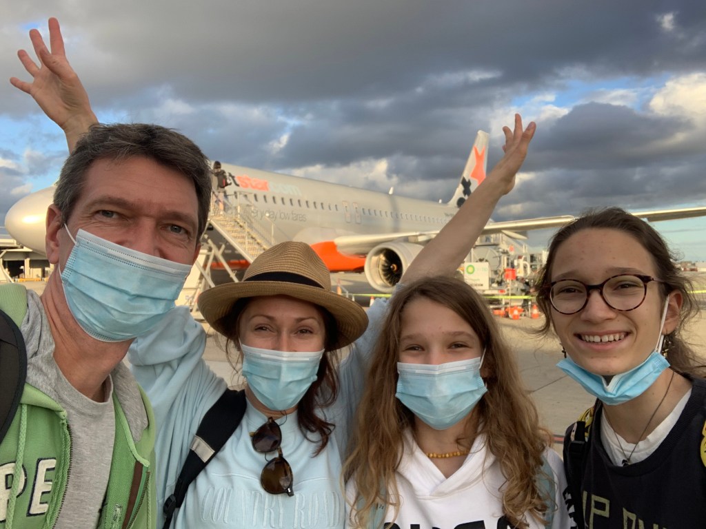 Australija vis dar gyvena IZOLIACIJOS rėžime. Tikslas – NULIS Covid atvejų, o vakcinacija SMARKIAI atsilieka (pilnai pasiskiepiję yra vos 10 proc suaugusiųjų). Taigi…. NULIS Covid palaikyti įmanoma TIK žiauriai apribojant judėjimo/veiksmų laisvę ir ta laisvė pas mus yra ŽIAURIAI apribota. Kai tik vienoje iš 8 valstijų Covid atvejų paauga iki dvigubo skaičiaus (aš nejuokauju, kalbu apie 10, 11, 20 atvejų), valstijos už-si-da-ro viena nuo kitos, judėjimas viduje apribojimas 5 km, o į šalį patekti apskritai yra misija neįmanoma, išvykti galima kiek paprasčiau tik išvykstant SU VISAM. Planai non-stop atšaukiami, keičiami, ir panašiai, net nenoriu įsivaizduoti viduje Australijos skraidančių avialinijų darbo chaoso, kuris, beje, tampa norma, nes “snap lockdown’ai” įvyksta žaibiškai, ryte dar niekas nieko neįtaria, o po pietų, jau viskas uždaryta, vaikai vėl mokosi internetu. Melburnas lockdown’uose +/- 140 dienų… Todėl galite įsivaizduoti jausmą, kuomet sėdėjau lėktuve (pirmą kartą per pusantrų metų), kuomet valgėm bet ką iš lėk-tu-viš-ko meniu ir gėrėm bet kokį putojantį, galite įsivaizduoti tą įsitempimą ir blyn naujai išsivysčiusią baimę, kad TUOJ TUOJ kažkas atsitiks ir viskas vėl apsivers aukštyn kojom…